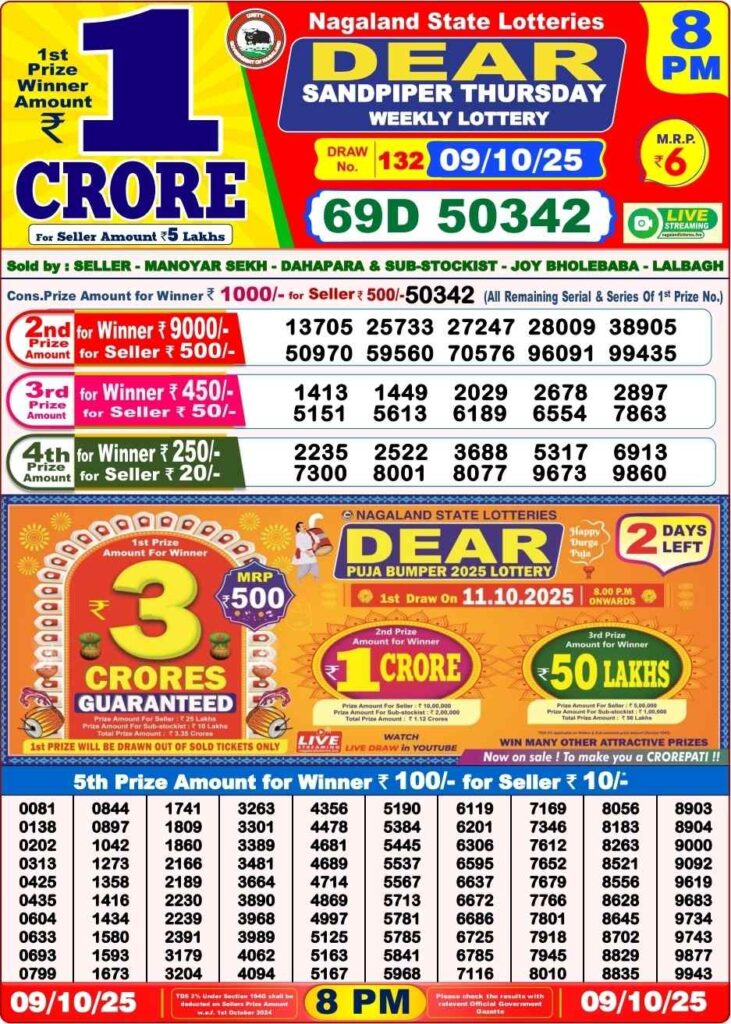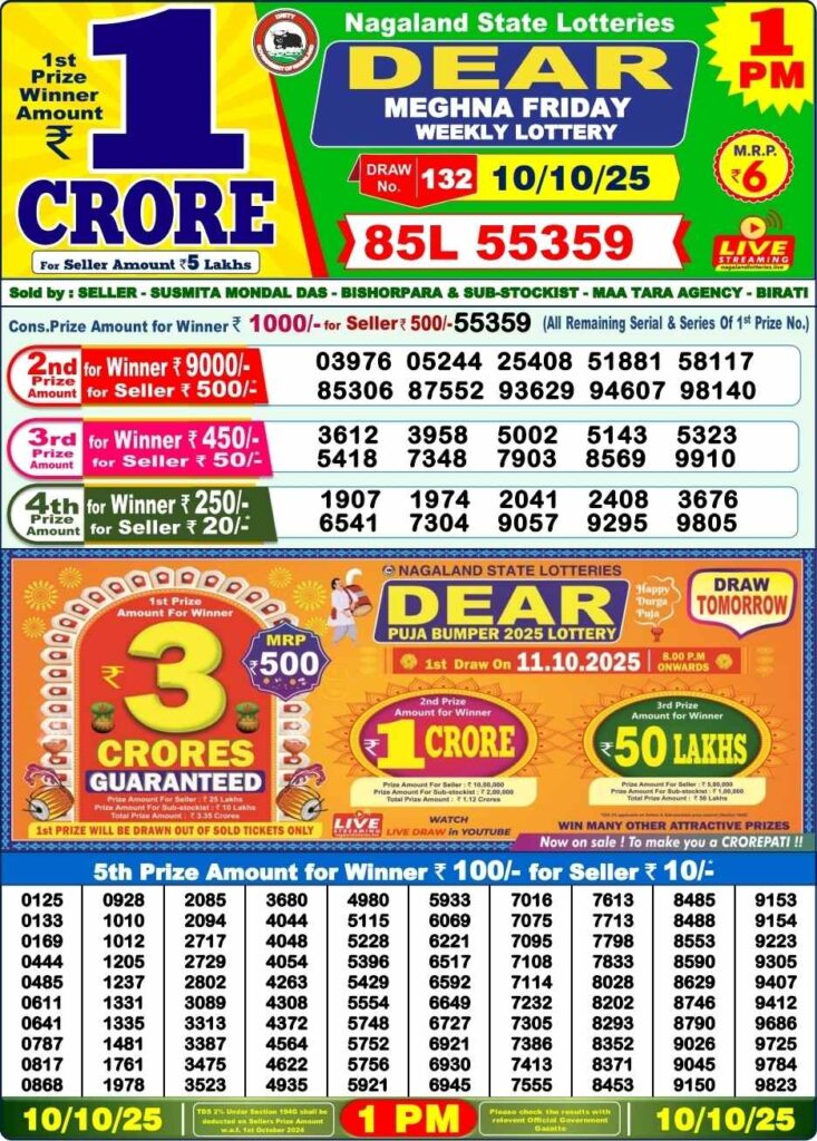 Nagaland State Lottery Sambad 11.10.2025 Today 1PM, 6PM & 8PM লটারি সংবাদ: Good morning my dear friends there you are in this post is about for the Nagaland state lottery 1pm morning, 6pm day and 8pm evening result and dear friends there you are in this specail post and all the other diffenret posts can be daily been updated with the latest lottery sambad results and friends if you needs the fastest delivery of the results then do us been created shortcut as the site name which has been known to be as Nagaland state lottery and its the another great morning of lovely weekend means Saturday 11th of October 2025 its lovely days peoples most searched sambad lottery which will be told to be as it will be Nagaland state lotteries DEAR OSTRICH EVENING and the result will be available at 1:10pm, 6:10pm and 8:10pm.